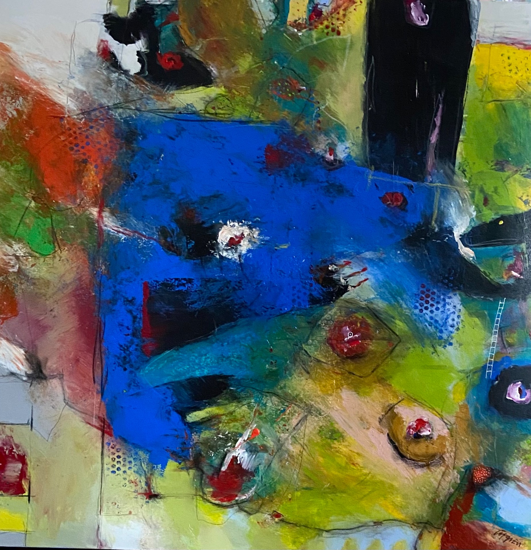 ”AUTUMN LEAVES” Blandteknik på duk, olja akryl, krita och blyerts. 100x100 cm. SÅLD!