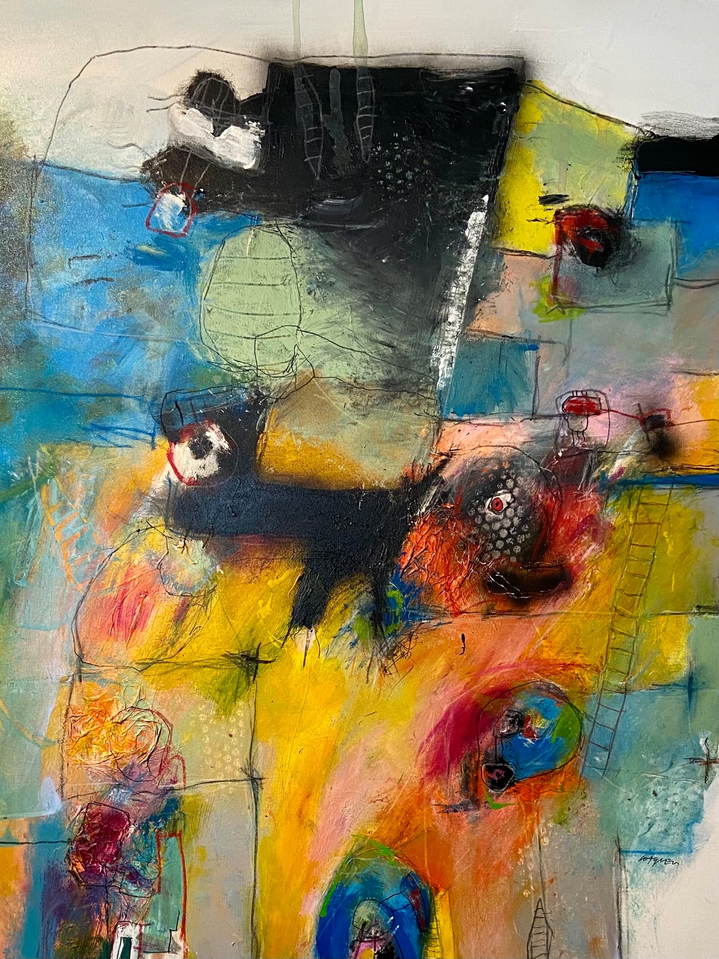 ”NO TITLE!” Blandteknik på duk. Format 70x50 cm.